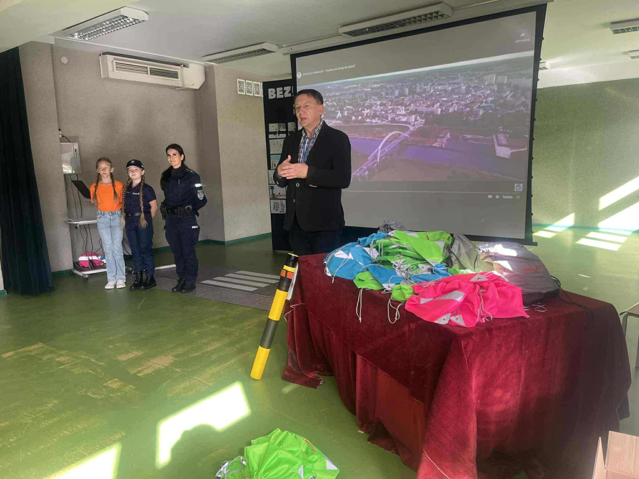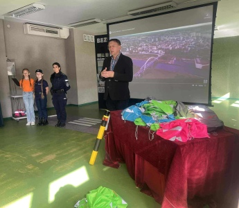 Edukacyjny wymiar spotkania zapewnili zaproszeni goście. Dariusz Wierzbicki, kierownik Wojewódzkiego Ośrodka Ruchu Drogowego w Ostrołęce, w przystępny i angażujący sposób przybliżył dzieciom kluczowe zasady zachowania na drodze. Szczególny nacisk położył na kwestię widoczności, gorąco zachęcając uczniów do stałego noszenia elementów odblaskowych, które mogą uratować życie, zwłaszcza w okresie jesienno-zimowym.
