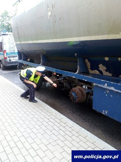 Podczas kontroli okazało się, że stan techniczny pojazdu jest bardzo zły i w ogóle nie powinien wyjechać na drogę. Naczepa ciągnika siodłowego zamiast na sześciu, poruszała się tylko na dwóch kołach. Z pojazdu wystawały kable. Ponadto, jak się okazało, kierowca nie posiada uprawnienia do kierowania samochodami ciężarowymi. Ważność jego badań skończyła się kilka miesięcy temu.