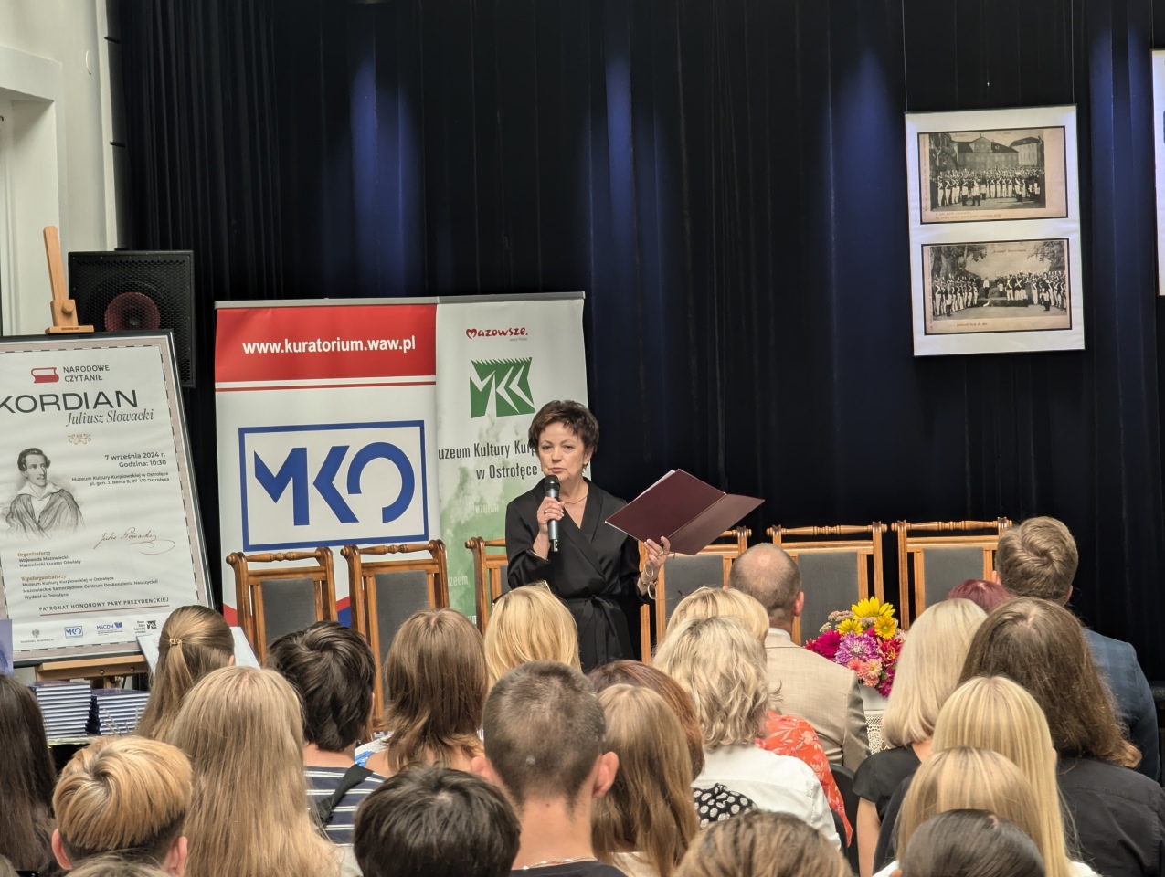 W Ostrołęce akcja wspólnego czytania odbyła się w Muzeum Kultury Kurpiowskiej. Wydarzenie zgromadziło wielu znamienitych gości. Swoją obecnością zaszczycili m.in. Robert Sitnik, wicewojewoda mazowiecki, oraz Wioletta Krzyżanowska, Mazowiecka Kurator Oświaty. Wśród osób, które przeczytały fragmenty „Kordiana”, znaleźli się również Paweł Niewiadomski, prezydent Ostrołęki, oraz Maria Samsel, dyrektor Muzeum Kultury Kurpiowskiej.