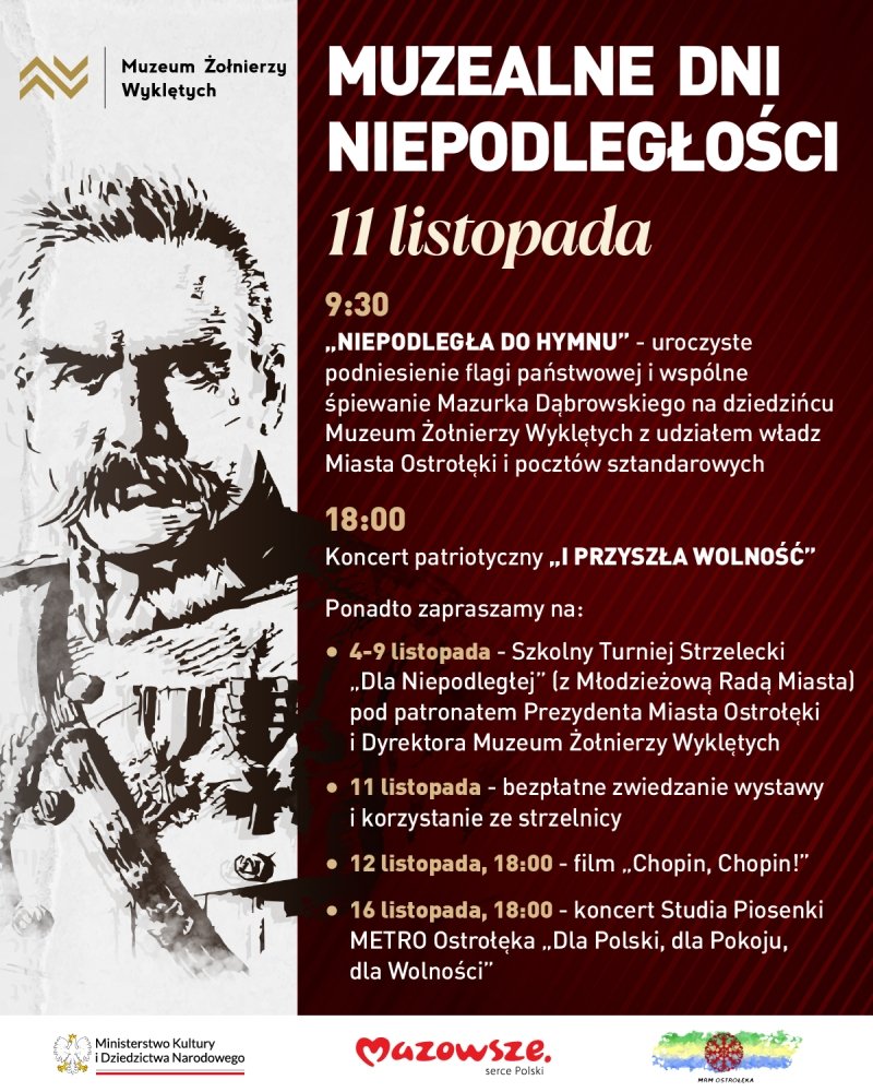Kulminacja obchodów nastąpi oczywiście 11 listopada. Uroczystości rozpoczną się punktualnie o godzinie 9:30 na dziedzińcu Muzeum Żołnierzy Wyklętych.