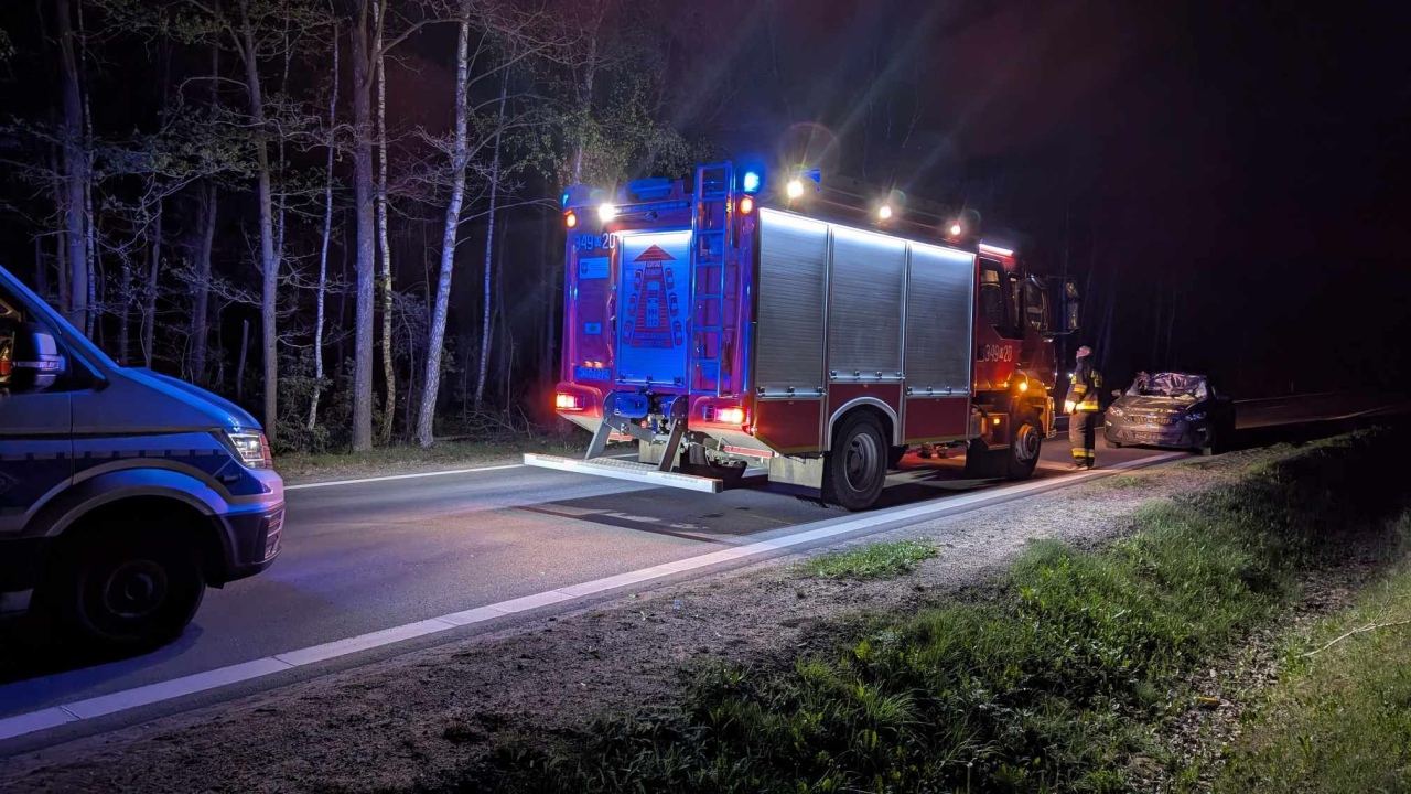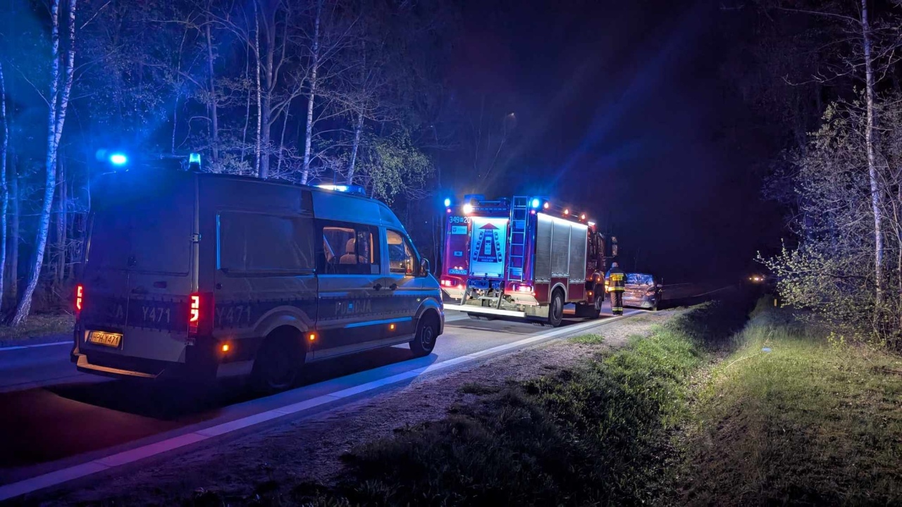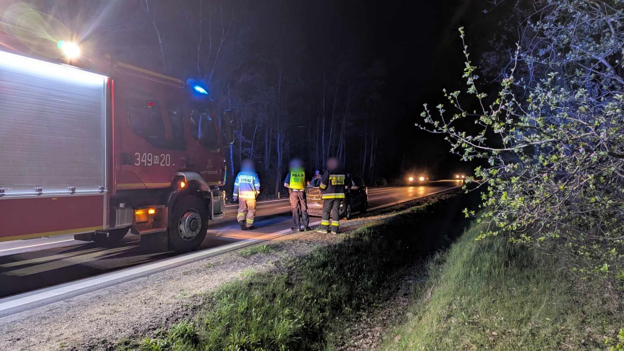 Na miejsce natychmiast skierowano patrol policji oraz jednostki straży pożarnej. Mundurowi przeprowadzili czynności wyjaśniające, a strażacy zadbali o zabezpieczenie drogi i pobliskiego terenu, aby zapewnić bezpieczeństwo innym uczestnikom ruchu.