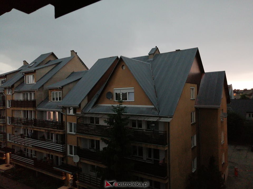 Kilka minut przed godziną 11:00 tuż przed ulewą niebo nad Ostrołęką pociemniało, a chwilę później z ciężkich burzowych chmur lunął deszcz. Zerwał się też porywisty wiatr, który łamał drzewa, zrywał dachy i linie energetyczne. W siedzibie ostrołęckiej straży pożarnej rozdzwonił się telefon ze zgłoszeniami dotyczącymi szkód wyrządzanych przez wichurę. Strażacy wyjeżdżali m.in. na osiedle Hallera, Centrum i Kwiatowe, do Czarnowca, Rzekunia, Daniszewa, Olszewa-Borek, Wolkowych, Myszyńca czy Baranowa.