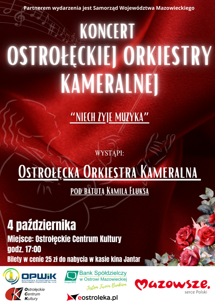 W tym roku obchodzimy wyjątkowy jubileusz – 50-lecie ustanowienia Międzynarodowego Dnia Muzyki. Z tej okazji, Ostrołęckie Centrum Kultury oraz portal eOstroleka.pl zapraszają na koncert Ostrołęckiej Orkiestry Kameralnej, który odbędzie się 4 października 2025 r. o godzinie 17:00 w sali widowiskowej OCK.