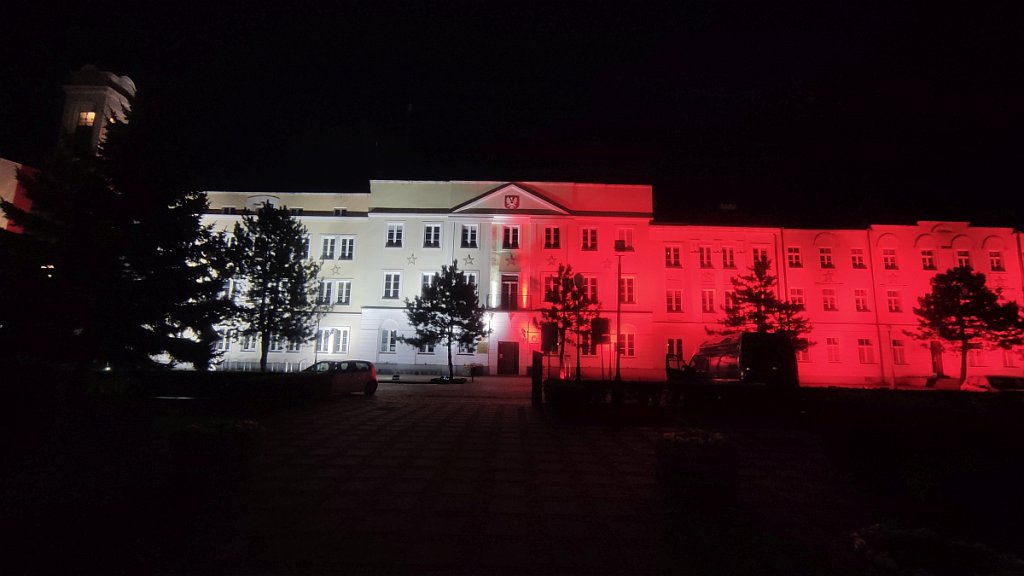 2 maja to Dzień Flagi Rzeczypospolitej Polskiej. Piękne biało-czerwone barwy możemy obserwować po zmroku na budynku ratusza oraz przy kościele farnym.