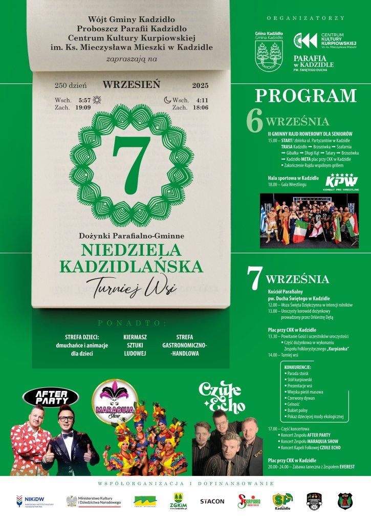 Dzień rozpocznie się II Gminnym Rajdem Rowerowym dla Seniorów. Start rajdu o godzinie 15:00, zbiórka przy ul. Partyzantów w Kadzidle. Trasa rajdu prowadzi przez Brzozówkę, Szafarnię, Gibałkę, Długi Kąt i Tatary, a zakończy się przy placu CKK w Kadzidle, gdzie przewidziano wspólnego grilla. W godzinach popołudniowych, o 18:00, w Hali sportowej w Kadzidle odbędzie się Gala Wrestlingu.