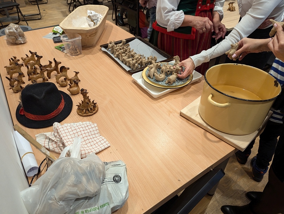 W trakcie spotkania zorganizowano warsztaty, podczas których uczestnicy nauczyli się tworzyć tradycyjne „byśki” oraz „nowe latka” – unikalne wyroby z ciasta, które dawniej były nieodłącznym elementem kurpiowskich obrzędów.