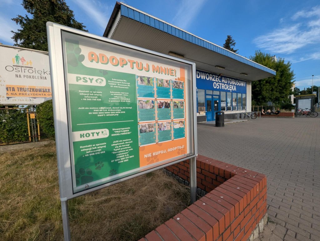 "Adoptuj mnie" - to hasło, które tablicy przy dworcu autobusowym w Ostrołęce. Przechodzą tu tysiące osób, które zerkając na tablicę mogą znaleźć czworonożnego przyjaciela.