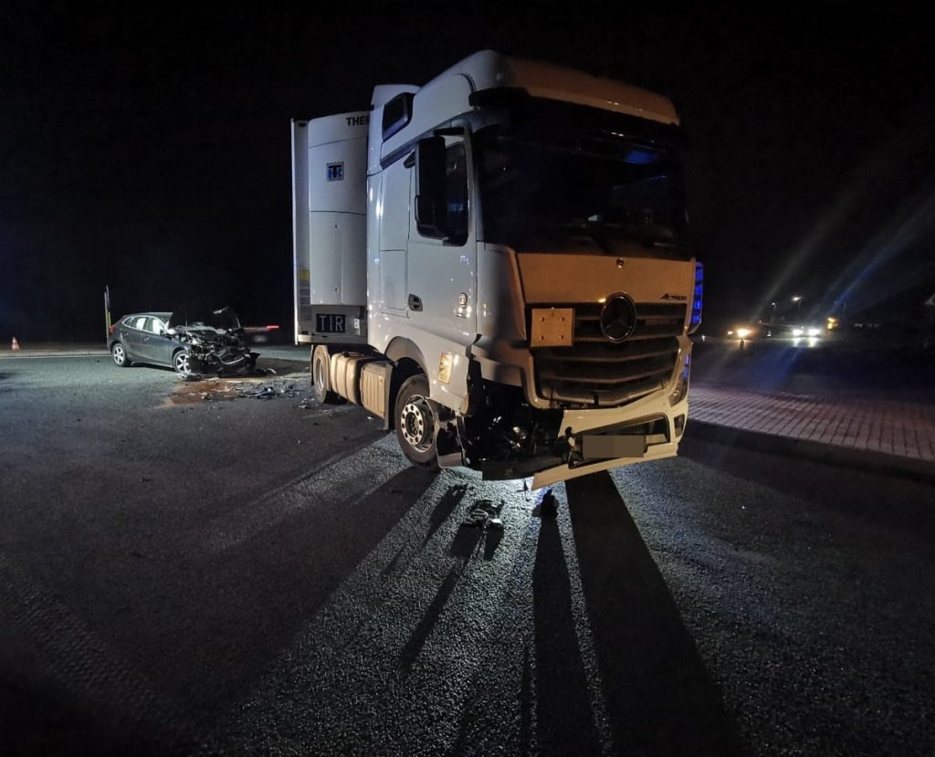 56-letni mężczyzna kierujący autem osobowym ucierpiał na skutek zderzenia z ciężarówką. Przyczyną wypadku było wymuszenie pierwszeństwa.