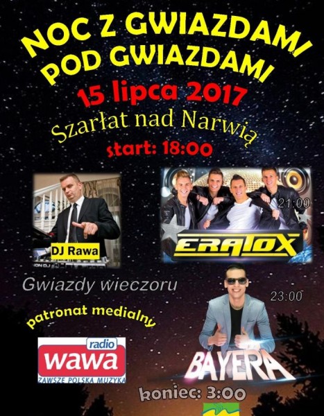 Muzycznie pod gwiazdami jak zawsze bawić Państwa będzie Dj Rawa i specjalnie zaproszeni: Eratox i Bayera.