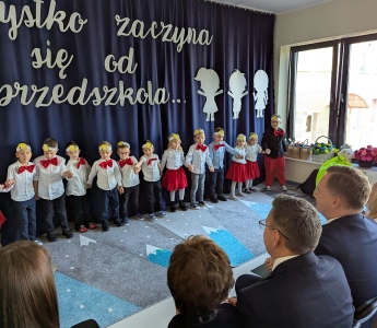Atmosferę uroczystości uświetniły same przedszkolaki, które zaprezentowały specjalnie przygotowany program artystyczny. Najmłodsi wyrecytowali wiersz zapowiadający rozpoczęcie oficjalnej ceremonii, natomiast starsze grupy śpiewały i bawiły się, tworząc radosną atmosferę tego wyjątkowego dnia.