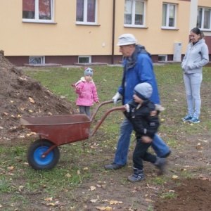 Jesienne prace porządkowe przed blokiem socjalnym przy ul. Braterstwa Broni