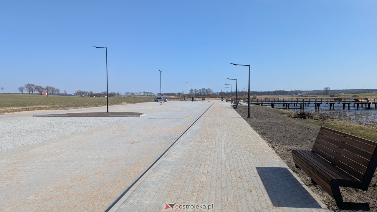 Projektanci pomyśleli również o zapleczu logistycznym, które jest niezbędne przy organizacji większych wydarzeń nad wodą. Zbudowano nowe zjazdy z drogi powiatowej oraz obszerny parking mieszczący 78 samochodów, z możliwością szybkiego powiększenia o dodatkowe 24 miejsca. Na terenie wyznaczono także specjalne stanowiska dla food trucków, co otwiera pole do rozwoju lokalnej gastronomii i obsługi turystów w sezonie letnim.