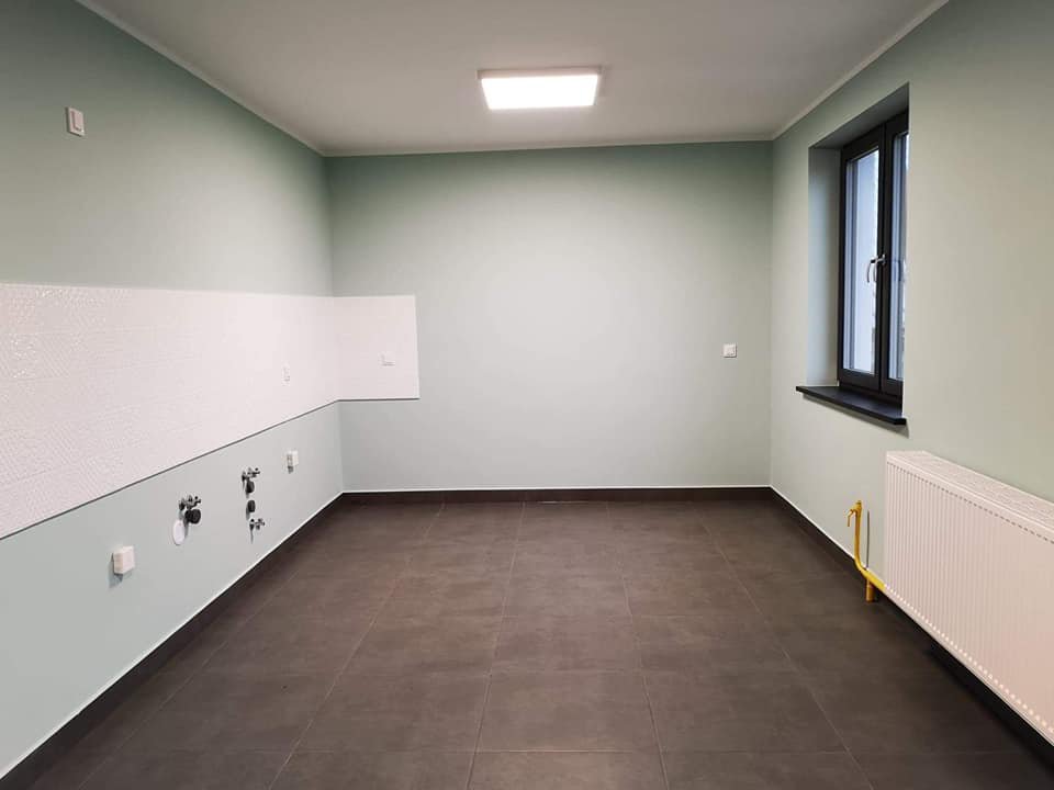 Ponadto ułożono płytki ceramiczne na ścianie, wyrównano posadzkę betonową i ułożono płytki na podłodze. Nie zabrakło nowej instalacji elektrycznej, w tym oświetlenia, nowej instalacji sanitarnej wody użytkowej i kanalizacji, a także instalacji ogrzewania. Wykonano tynki oraz pomalowano ściany.