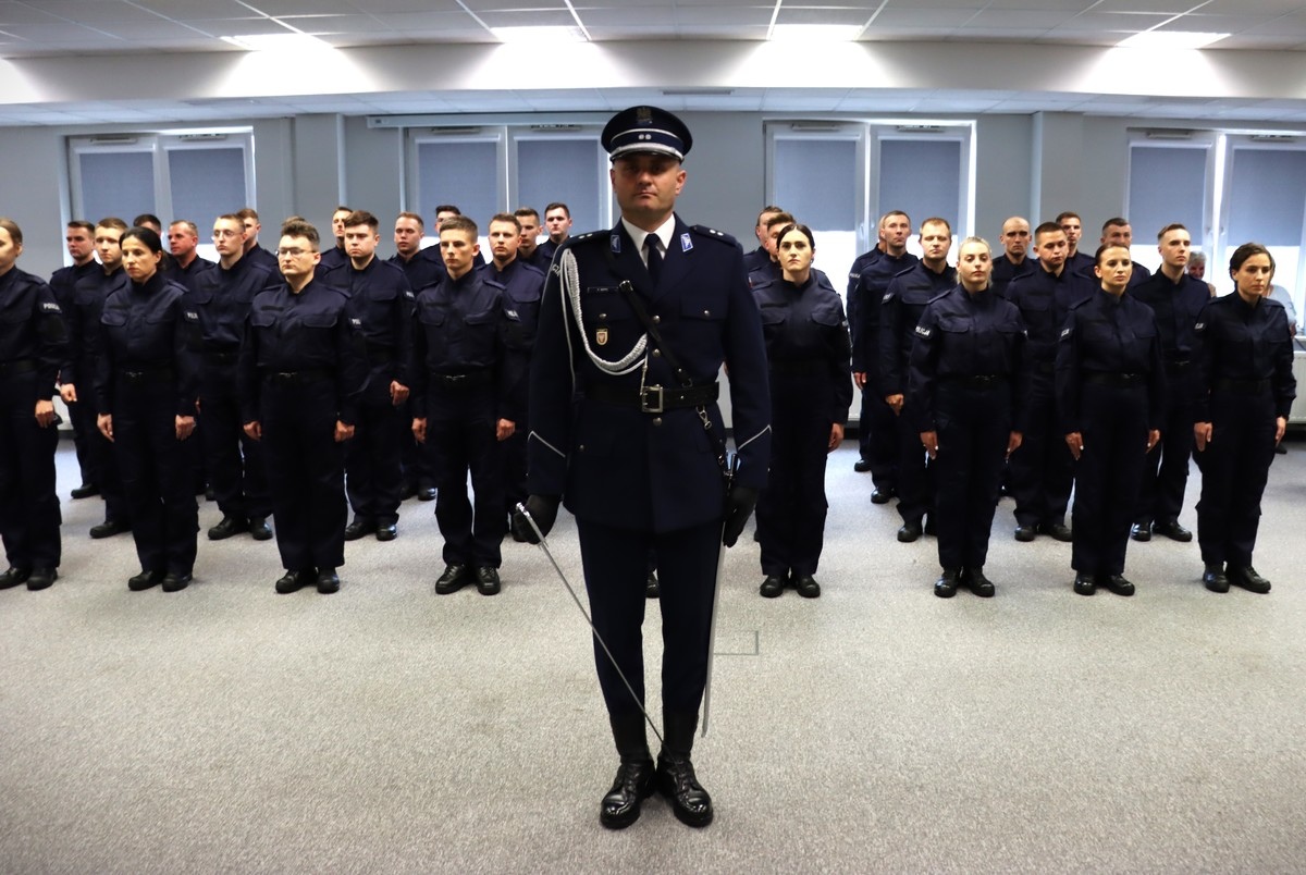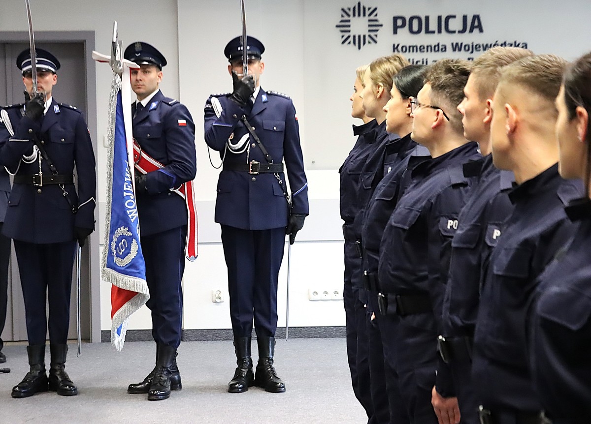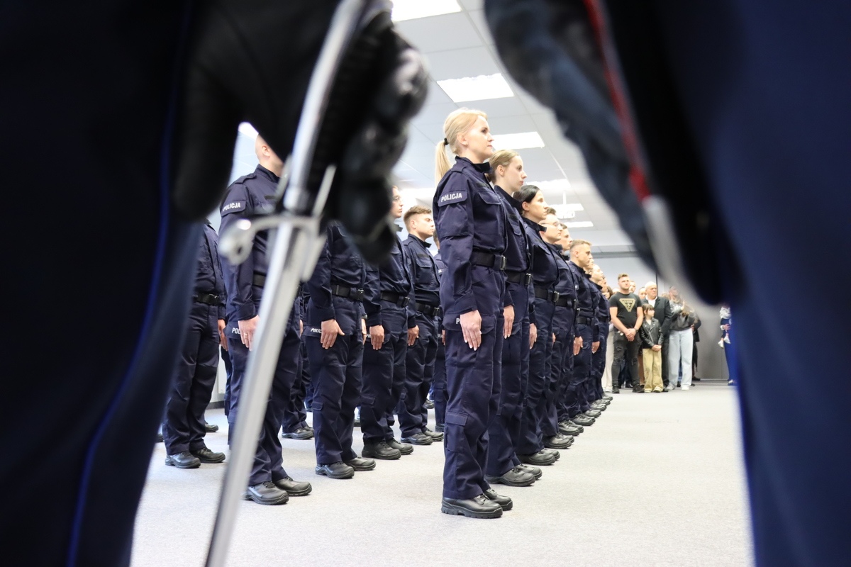 - Drodzy rodzice, ja bardzo dziękuję za wychowanie tych młodych ludzi w duchu szeroko pojętego patriotyzmu, ale w duchu też pomagania innym osobom, w duchu patrzenia na dobro, na praworządność, bo to jest bardzo ważne. Bez waszego wsparcia na pewno tych osób tutaj by nie było - powiedział komendant wojewódzki nadinsp. Waldemar Wołowiec, zwracając się do rodzin nowych policjantów.