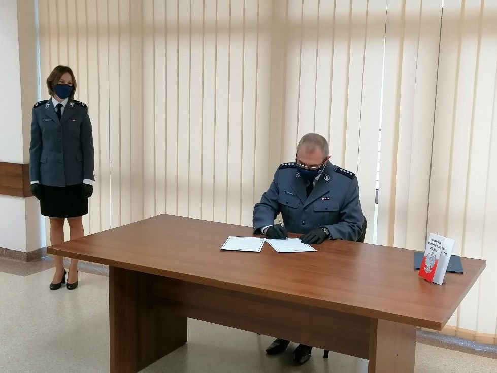 Dzień złożenia ślubowania jest niezwykle ważny dla każdego policjanta. Ślubowanie z uwagi na epidemię odbyło się w sposób kameralny w sali konferencyjnej ostrołęckiej komendy.- informuje podkomisarz Tomasz Żerański, rzecznik prasowy Komendy Miejskiej Policji w Ostrołęce.