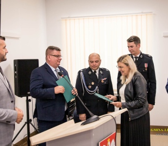 Aktu przekazania sprzętu dokonali wspólnie Wójt Gminy Lelis Stefan Prusik oraz Elżbieta Mech, kierownik ostrołęckiego oddziału Mazowieckiej Jednostki Wdrażania Programów Unijnych, reprezentująca Mazowsze. W ceremonii uczestniczyli również Przewodniczący Rady Gminy Lelis Paweł Kurpiewski oraz Starosta Ostrołęcki Piotr Liżewski.