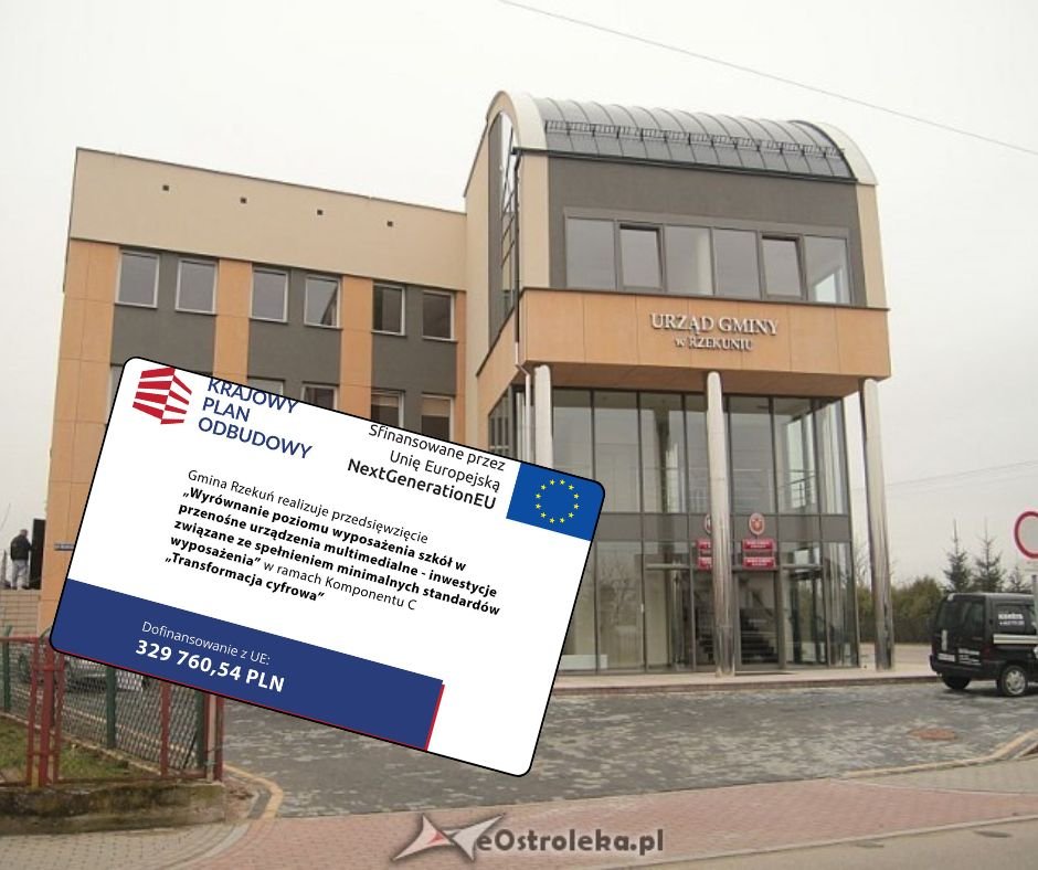 Gmina Rzekuń zrealizowała przedsięwzięcie pod nazwą „Wyrównanie poziomu wyposażenia szkół w przenośne urządzenia multimedialne - inwestycje związane ze spełnieniem minimalnych standardów wyposażenia”. Projekt został przeprowadzony w ramach Komponentu C „Transformacja cyfrowa” Krajowego Planu Odbudowy i Zwiększania Odporności.