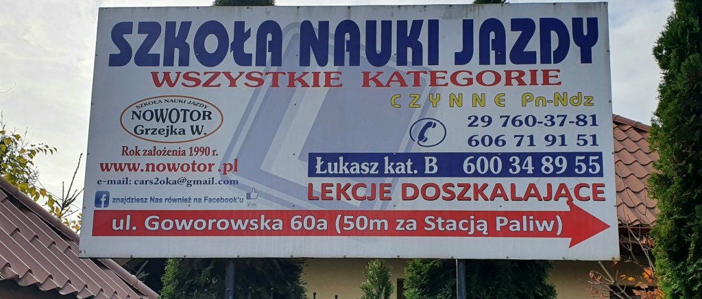 Przekonajcie się sami o jakości Nowotor, postawcie na sprawdzoną szkołę z wieloletnim doświadczeniem i skorzystajcie z kursów na prawo jazdy. Biuro tej szkoły znajdziecie przy ul. Goworowskiej 60A w Ostrołęce - za Subway'em, 100 metrów od WORD.