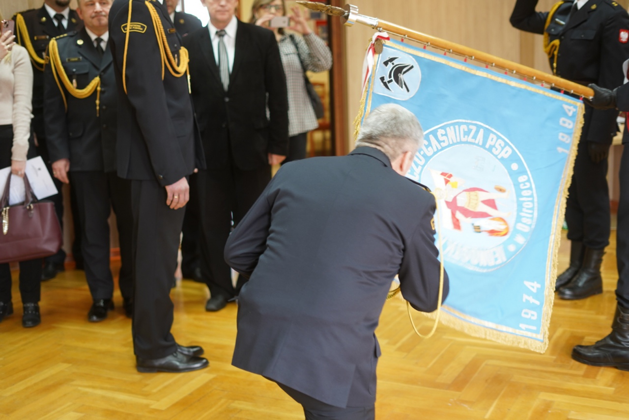 Odchodzący na emeryturę Komendant także podziękował za współpracę, samorządowcom z terenu powiatu, przedstawicielom pozostałych służb i wszystkim, którzy przez lata wspierali działania oraz rozwój ostrołęckiej jednostki KM PSP i ochrony przeciwpożarowej na terenie powiatu. Pożegnał sztandar jednostki i podziękował współpracownikom oraz podwładnym, a szczególne słowa wdzięczności skierował do żony, która przez lata wspierała go i okazywała wyrozumiałość dla służby związanej z ciągłą dyspozycyjnością oraz dużą ilością obowiązków służbowych.