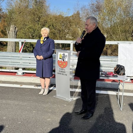 "Uroczyste otwarcie i poświęcenie mostu we wsi Świerże Kiełcze w gminie Zaręby Kościelne. Dofinansowanie Rządu Zjednoczonej Prawicy z Rządowego Funduszu Polski Ład kwotą ok. 4,8 mln zł. Gratuluję mieszkańcom wspaniałej i długo wyczekiwanej inwestycji" – napisał poseł Grabowski. W otwarciu mostu uczestniczyli też senator Robert Mamątow i poseł Henryk Kowalczyk.