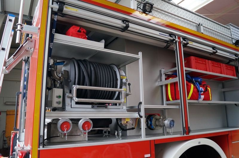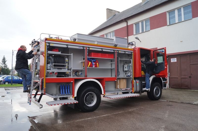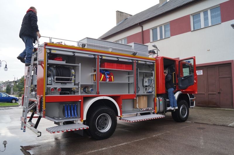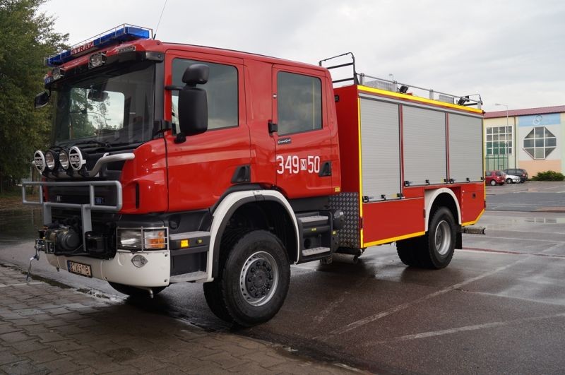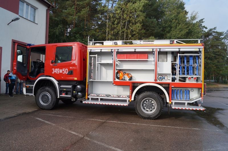 fot. lelis.plNowy, ciężki pojazd ratowniczo-gaśniczy jest zbudowany na podwoziu scania P400 z napędem 4x4. W skład zabudowy pożarniczej wchodzą, między innymi, zbiornik na wodę 5000 l, zbiornik na środek pianotwórczy 500 l, skrytki na sprzęt ratowniczy, maszt oświetleniowy ułatwiający prowadzenie akcji w porze nocnej, zestaw ratowniczy oraz piła do cięcia betonu i stali.