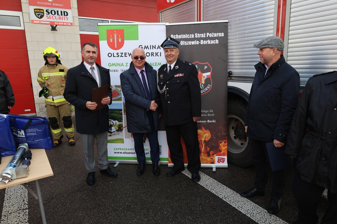 W piątek w Olszewie-Borkach miało miejsce oficjalne przekazanie nowoczesnego sprzętu ratowniczego dla lokalnej jednostki Ochotniczej Straży Pożarnej. Dokument przekazania na ręce Mariusza Załęskiego, prezesa Zarządu OSP Olszewo-Borki, wręczyli Krzysztof Grala, wójt gminy Olszewo-Borki oraz Piotr Liżewski, starosta ostrołęcki.