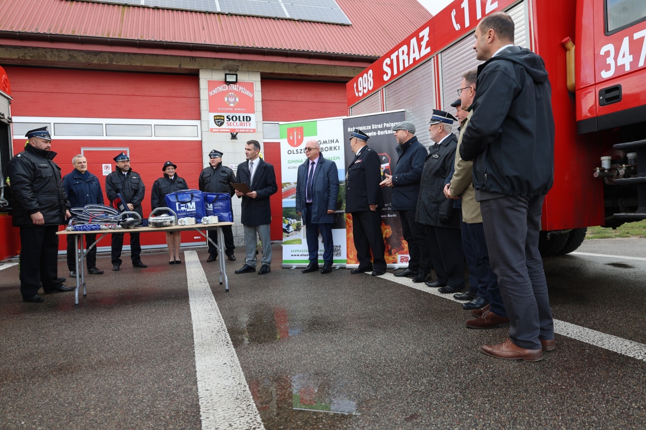 Ochotnicza Straż Pożarna w Olszewie-Borkach otrzymała nowoczesny zestaw narzędzi hydraulicznych marki LUCAS do ratownictwa drogowego. Sprzęt o wartości 126,5 tysiąca złotych został sfinansowany przez gminę, powiat, wojewódzki fundusz oraz samych strażaków.