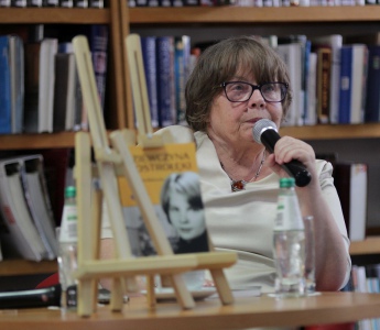 W trakcie spotkania poprowadzonego przez Annę Wołosz pisarka opowiadała m.in. o swojej twórczości, o “Dziewczynie z Ostrołęki” oraz o Jerzym Żuławskim.