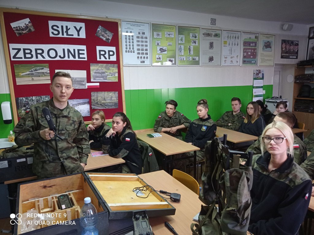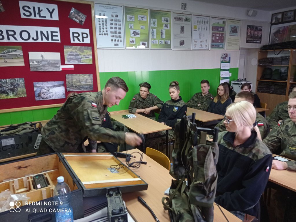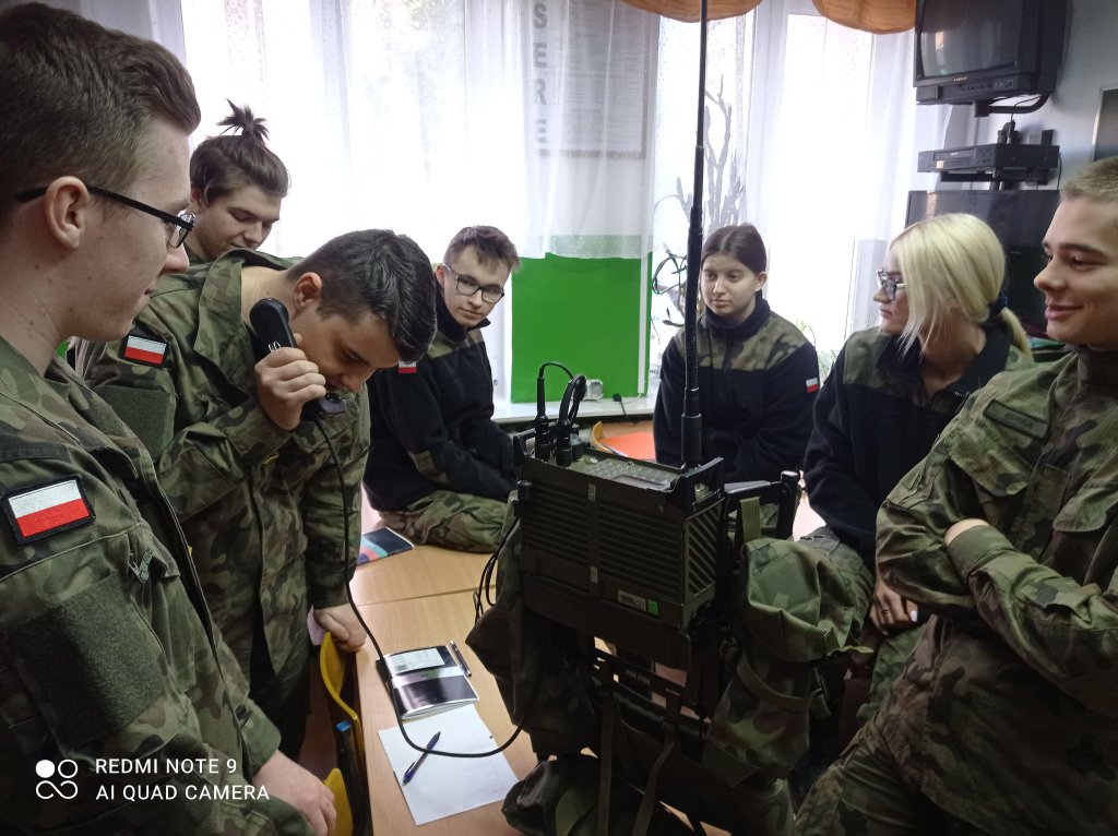 Uczniowie poznali ogólną charakterystykę i budowę radiostacji plecakowej. Podstawowe przepisy prowadzenia korespondencji radiowej, przeznaczenie i dane techniczne radiostacji przenośnych o mocy UKF, programowanie radiostacji. Nawiązywali łączność w sieci radiowej. Po dzisiejszych zajęciach kadetom nie będą obce hasła: tangenta, kryptonim, korespondencja radiowa, częstotliwość, znajomość przycisków PWR, RX.