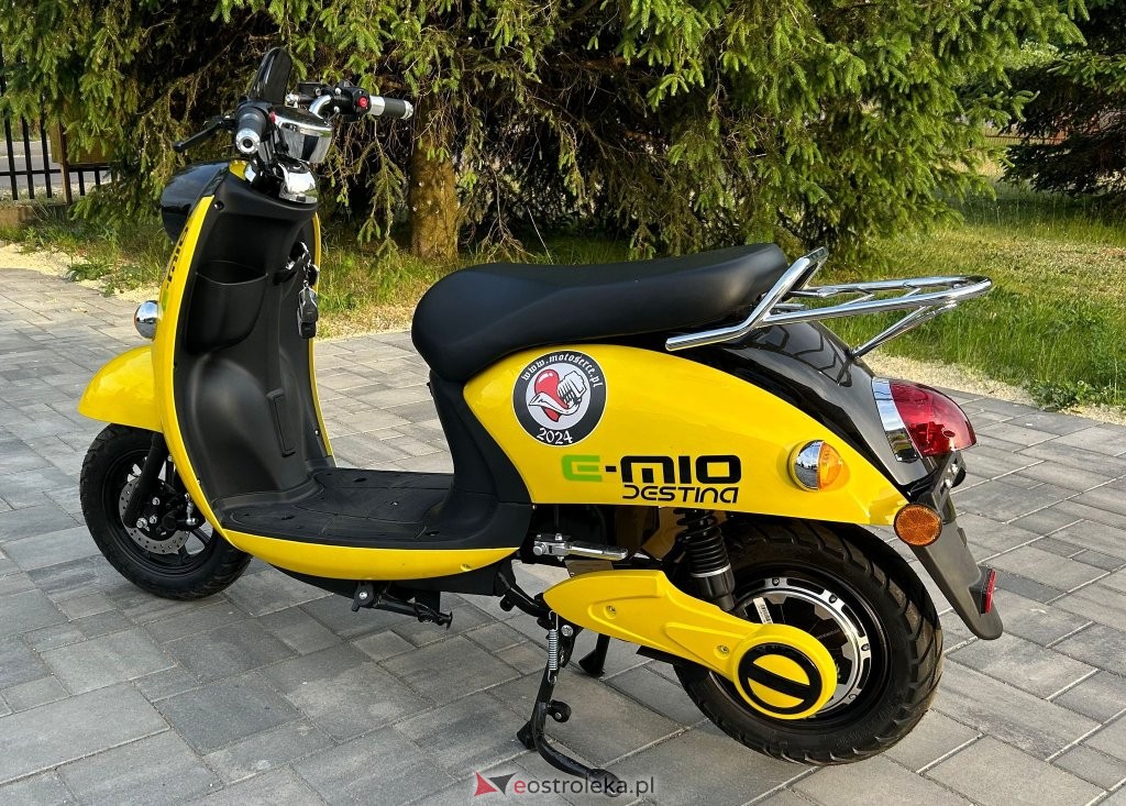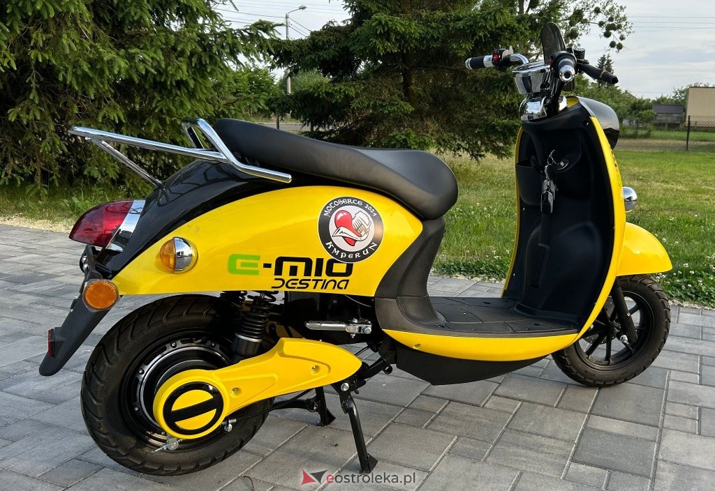 E-Mio Destina to stylowy skuter, napędzany bezszczotkowym silnikiem o mocy 2000 W, którym pełnoletni kierowca może poruszać się po drogach publicznych bez prawa jazdy na motocykl.