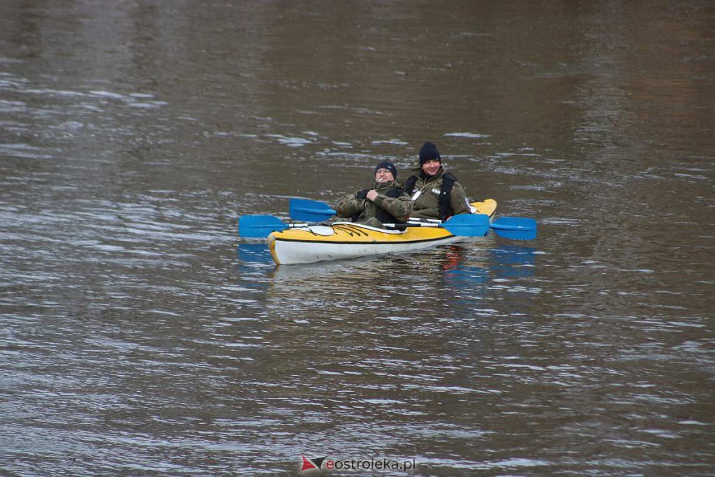 Zaplanowana na dziś akcja „Odmulania Omulwi” rozpoczęła się o godzinie 10:00 od oczyszczania terenu wzdłuż Narwi oraz okolicznego lasu. Następnie, punktualnie o godzinie 12:00 spod drewnianego mostu przez Omulew w miejscowości Kruki, uczestnicy spływu ruszyli z prądem w kierunku dopływu z Narwią, oczyszczając po drodze rzekę i jej brzeg ze śmieci. Wśród śmiałków, którzy mimo przenikliwego zimna zdecydowali się na udział w spływie, nie zabrakło nurków. Była też grupa płynąca kajakami czy deskami. Nad bezpieczeństwem uczestników czuwała załoga ratowników z jednostki strażackiej.