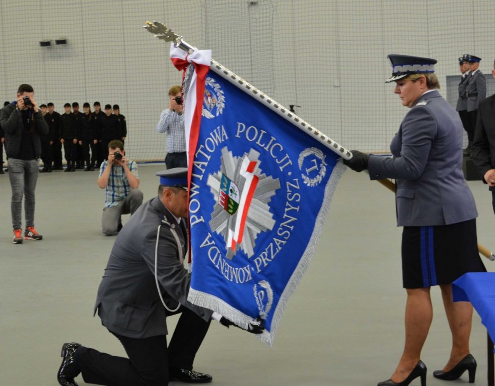 fot. KPP w PrzasnyszuUroczysty apel z okazji Święta Policji oraz wręczenia i nadania sztandaru przasnyskiej komendzie Policji poprzedziła Msza Święta, którą celebrował ks. bp. Roman Marcinkowski wspólnie z kapelanami policji. Po mszy kompania honorowa policji, policjanci i goście przemieścili się do hali sportowej PSP nr 3 w Przasnyszu, gdzie miejscowy Komendant Powiatowy Policji insp. Tomasz Łysiak przywitał przybyłych gości. W trakcie uroczystości odczytano Akt Nadania Sztandaru podpisany przez Ministra Spraw Wewnętrznych i Administracji Joachima Brudzińskiego.