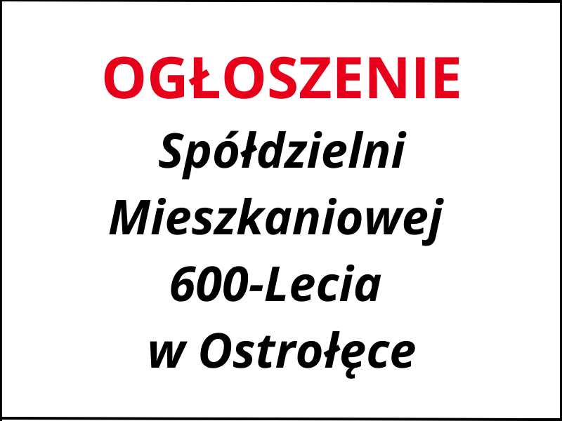Spółdzielnia Mieszkaniowa 600-Lecia w Ostrołęce, zleci usługi sprzątania na terenie osiedla oraz bloków będących w zasobach spółdzielni.