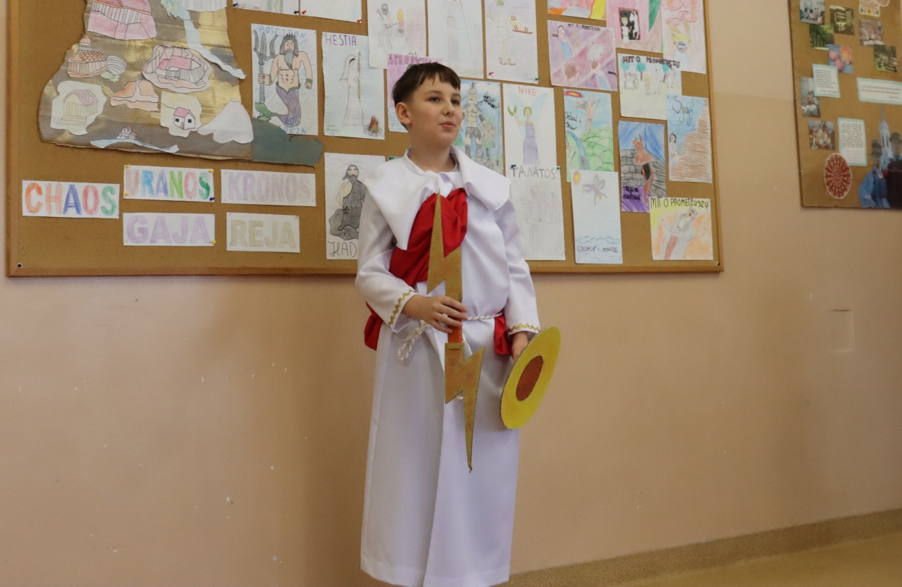 Na lekcje języka polskiego do klasy Va i Vb „zawitali” bogowie olimpijscy. Opowiedzieli w niezwykle interesujący sposób, jak im się mieszka na Olimpie, czym się tam zajmują, zaprezentowali również przyniesione przez siebie atrybuty. Na zajęciach został wykorzystany sprzęt zakupiony w ramach programu Laboratoria Przyszłości.- informuje Szkoła Podstawowa nr 4.