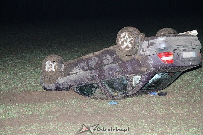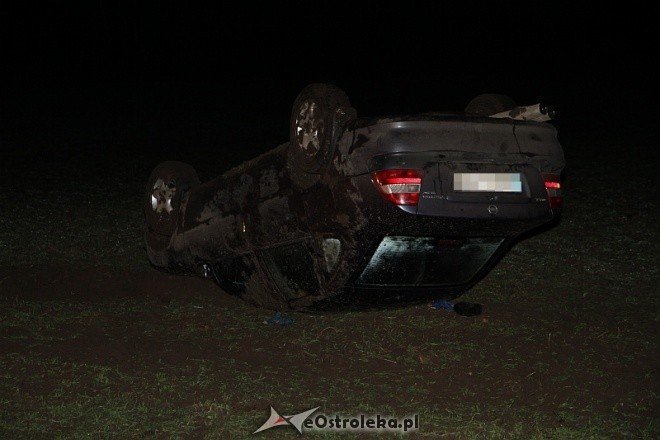 Z nieustalonych jeszcze przyczyn opel vectra zjechał na pobocze a następnie dachował.
