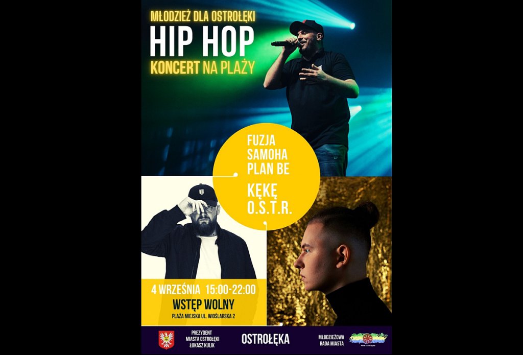 Będzie to z pewnością nie lada gratka dla fanów hiphopowego brzemienia. 4 września na plaży miejskiej w Ostrołęce odbędzie się koncert realizowany jako projekt „Młodzież dla Ostrołęki” finansowany w ramach Budżetu Obywatelskiego. Na scenie zaprezentują się tacy artyści jak: Fuzja, SamoHa, Plan Be oraz gwiazdy wieczoru – KęKę i O.S.T.R.
