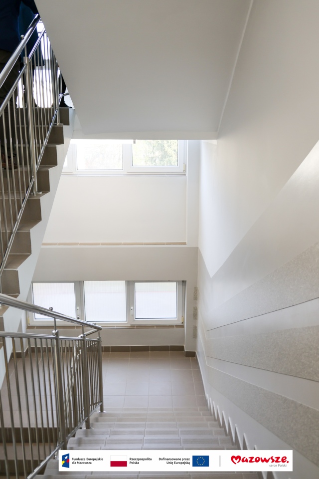 Projekt został współfinansowany przez Unię Europejską ze środków Europejskiego Funduszu Rozwoju Regionalnego w ramach programu Fundusze Europejskie dla Mazowsza 2021–2027 (Priorytet V: „Fundusze Europejskie dla wyższej jakości życia na Mazowszu”, Działanie 5.1: „Dostępność szkół dla osób ze specjalnymi potrzebami”).