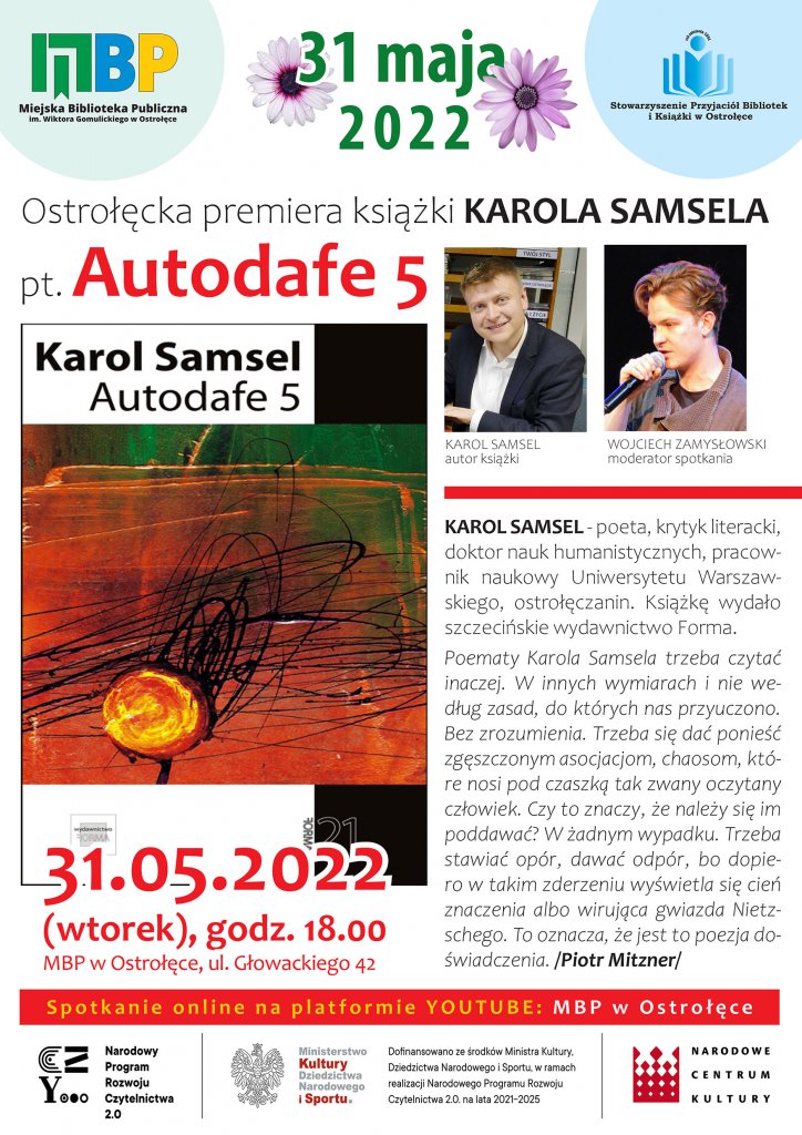 Ostrołęcka premiera książki Karola Samsela pt. Autodafe 5, 31 maja (wtorek), godz. 18.00, MBP, ul. Głowackiego 42.