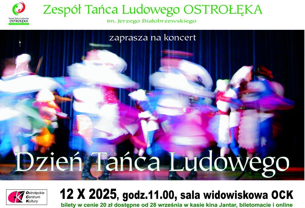 Już 12 października Ostrołęckie Centrum Kultury (OCK) zaprasza na wyjątkowe wydarzenie. Z okazji Dnia Tańca Ludowego na scenie sali widowiskowej OCK o godzinie 11:00 wystąpi Zespół Tańca Ludowego "Ostrołęka" im. Jerzego Białobrzewskiego.