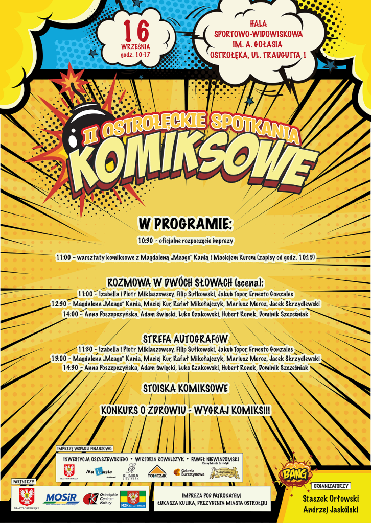 Tegoroczne Ostrołęckie Spotkania Komiksowe odbędą się 16 września w hali Sportowo-Widowiskowej im. A. Gołasia, przy ul. Traugutta 1