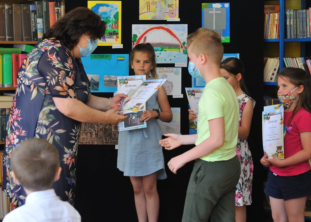 Podczas uroczystego spotkania w bibliotece szkolnej dyrektor Beata Kowalczyk wręczyła laureatom dyplomy, nagrody rzeczowe oraz vouchery ufundowane przez kawiarnię Cafe Fusy w Ostrołęce.