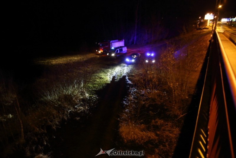 fot. eOstrołęka.plW sobotni wieczór policja, pogotowie ratunkowe i straż pożarna z Ostrołęki postawiona został w stan gotowości. Do oficera dyżurnego wpłynęła informacja, że z tzw. nowego mostu skoczył mężczyzna. Natychmiast do akcji ratunkowej zadysponowano właściwe służby. Na miejscu już po chwili pojawiły się pierwsze patrole policji, załoga ratowników medycznych oraz straż pożarna. Dowodzący akcją zdecydował o zaangażowaniu załogi łodzi ratunkowej ze specjalistycznym sprzętem.