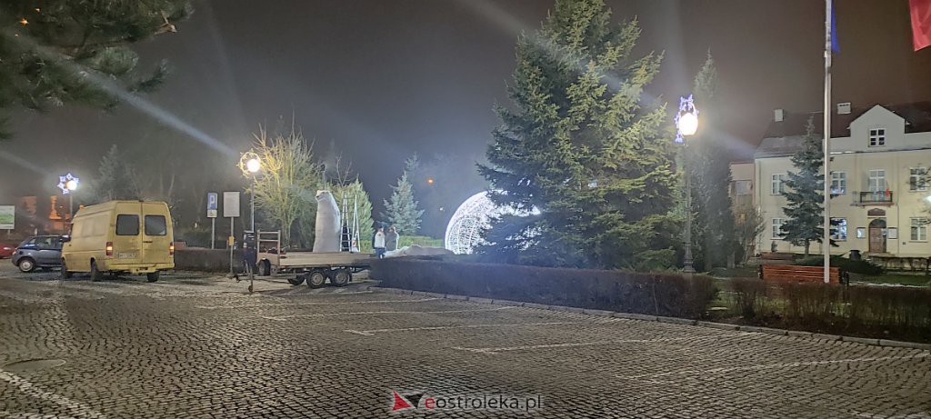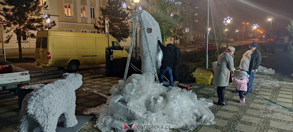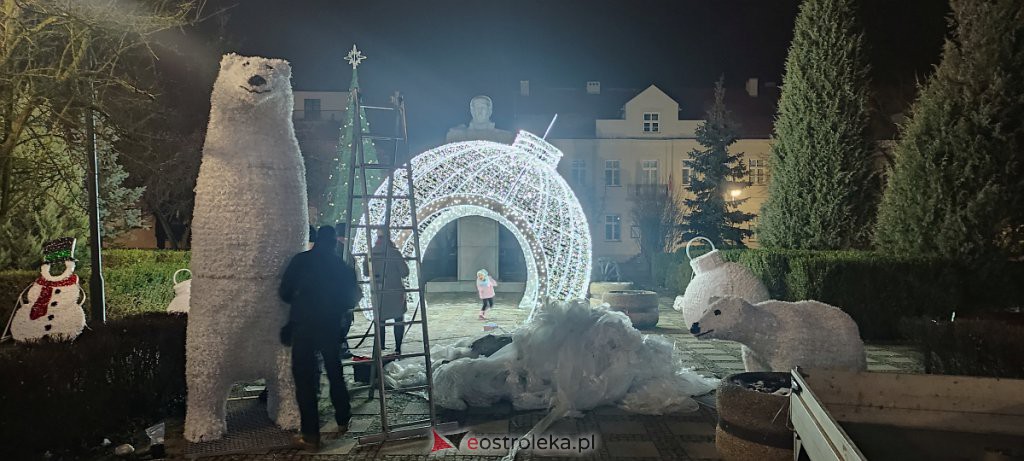 Tymczasem w tej nieformalnej rywalizacji Ostrołęka zaczęła doganiać Kadzidło. Dziś przed ratuszem ekipa monterów instalowała świetlistą kulę oraz ogromnych rozmiarów figury niedźwiedzi polarnych. Te świąteczne ozdoby mają szansę zaskarbić sobie sympatię mieszkańców równie dużą jak one same. Trzeba przyznać, że instalacja już teraz robi wrażenie. Pełni efektu doda śnieg, na który wszyscy z niecierpliwością czekamy.