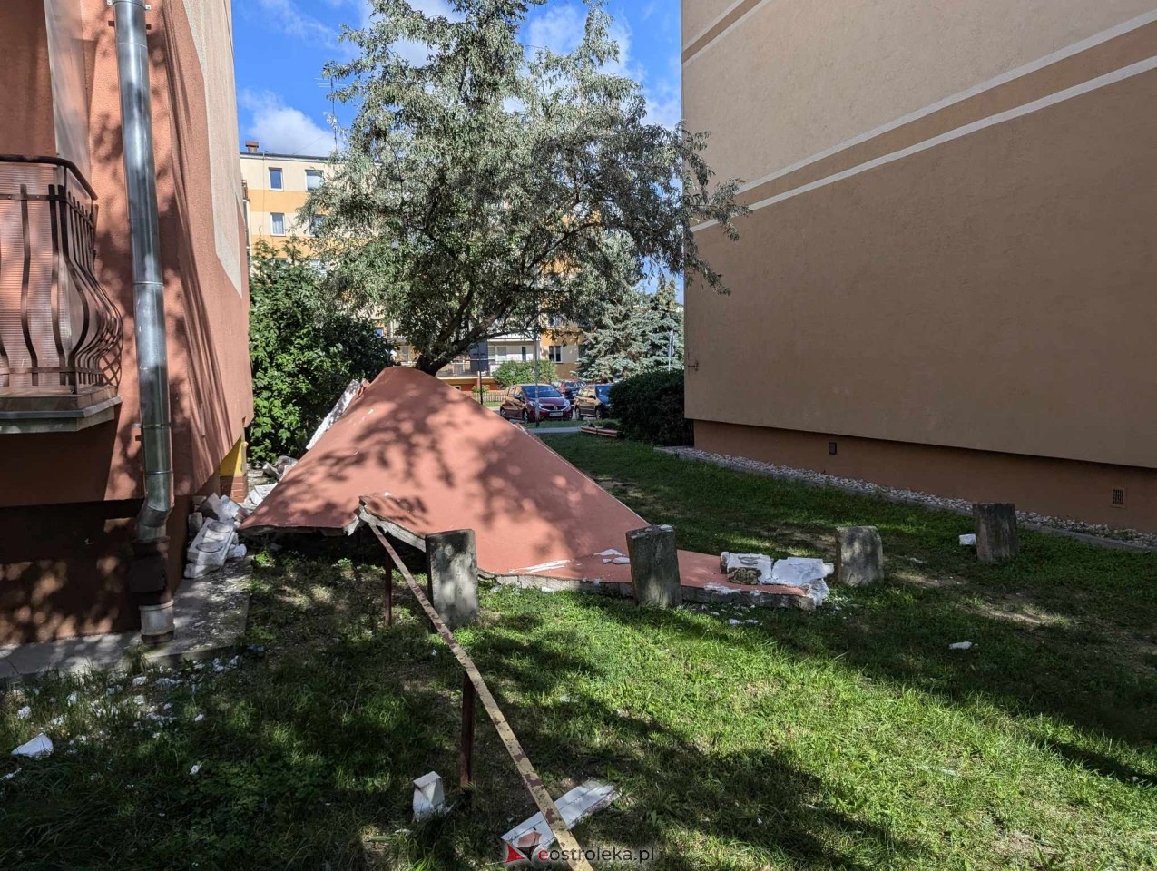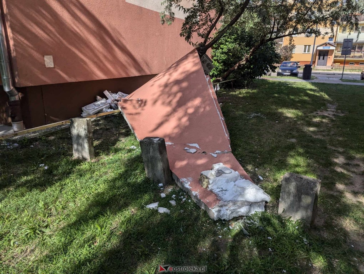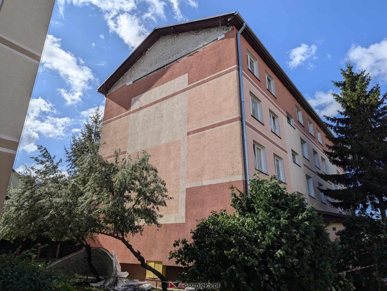 W Ostrołęce, przy ulicy Roweckiego “Grota” wichura uszkodziła elewację jednego z bloków. Oderwane elementy elewacji zwisające niebezpiecznie z budynku zabezpieczyli strażacy. Na szczęście nikt nie odniósł obrażeń.