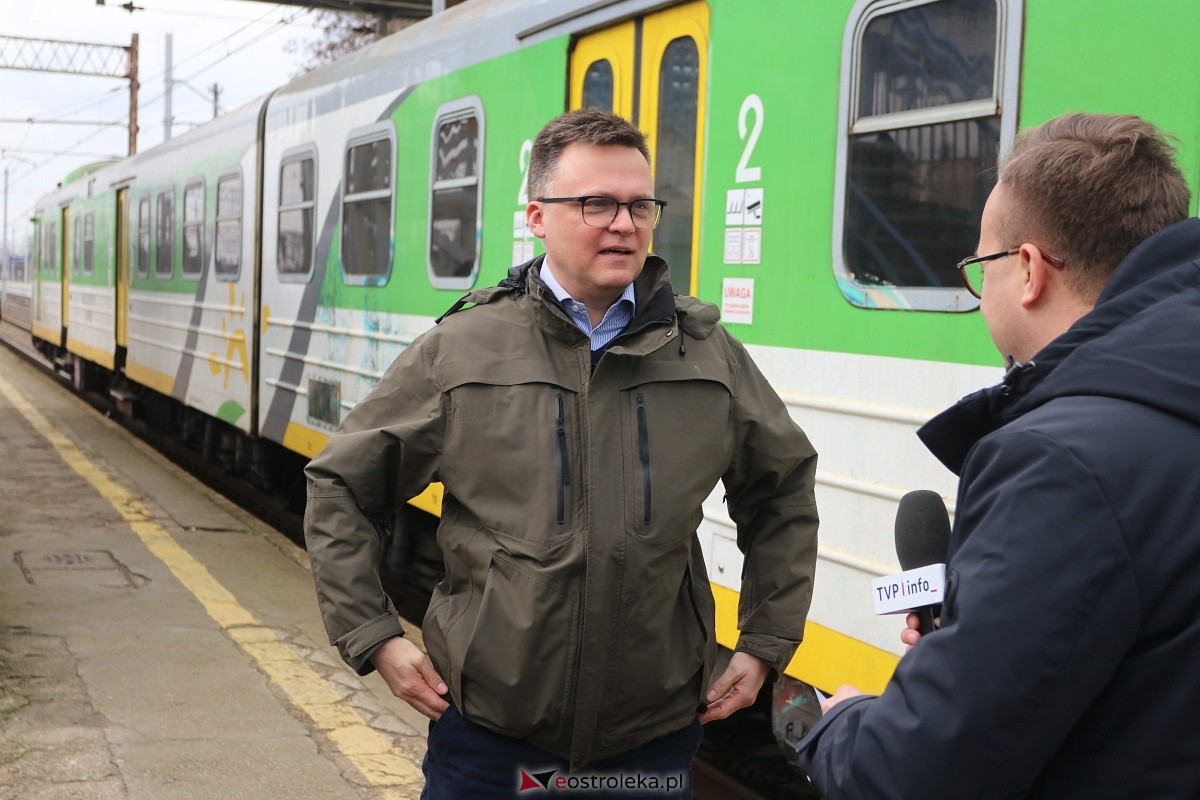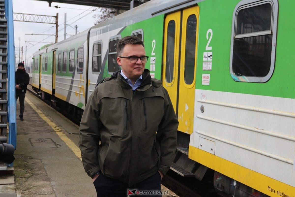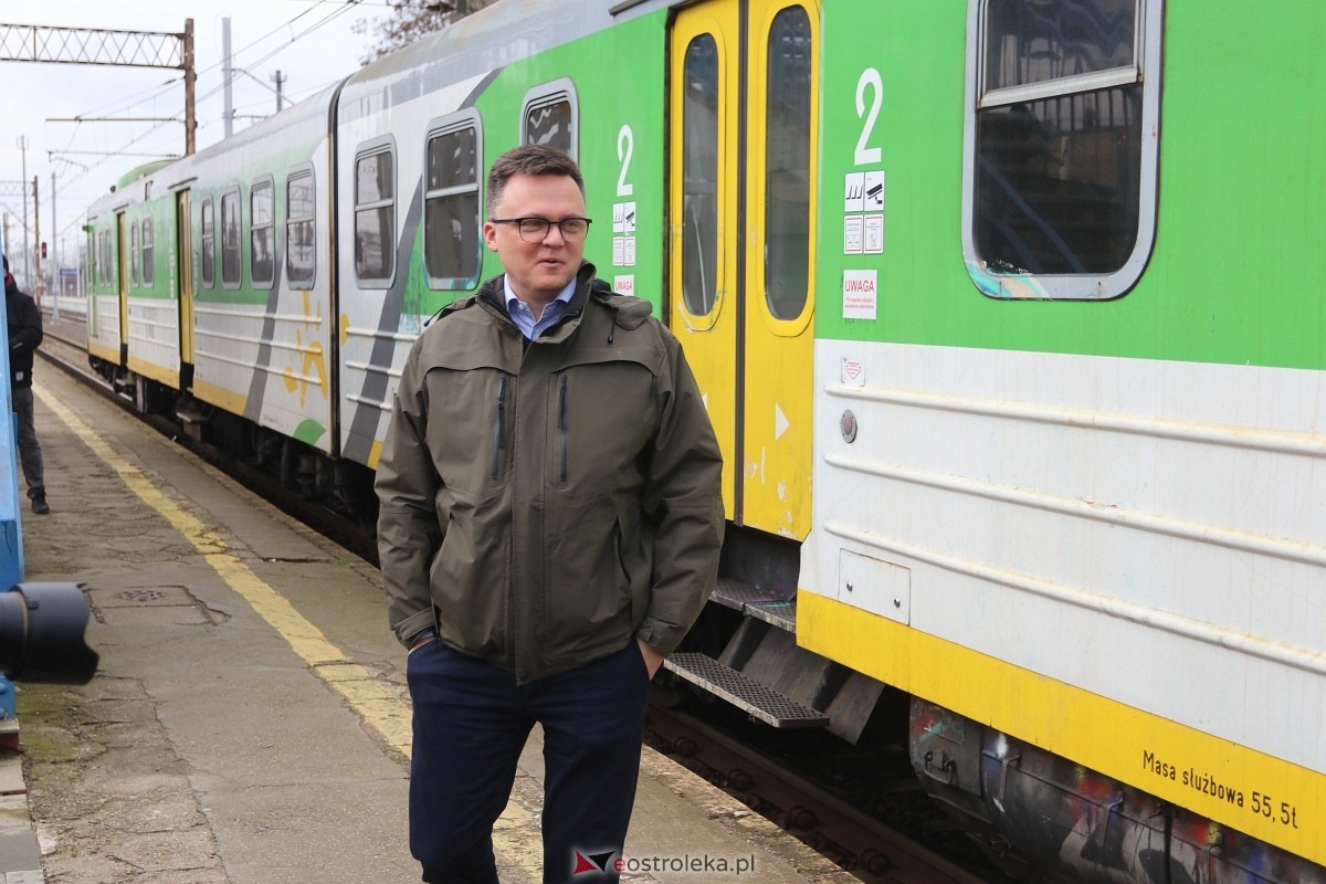 Marszałek Sejmu Szymon Hołownia w Ostrołęce. Przyjechał pociągiem [WIDEO, ZDJĘCIA]