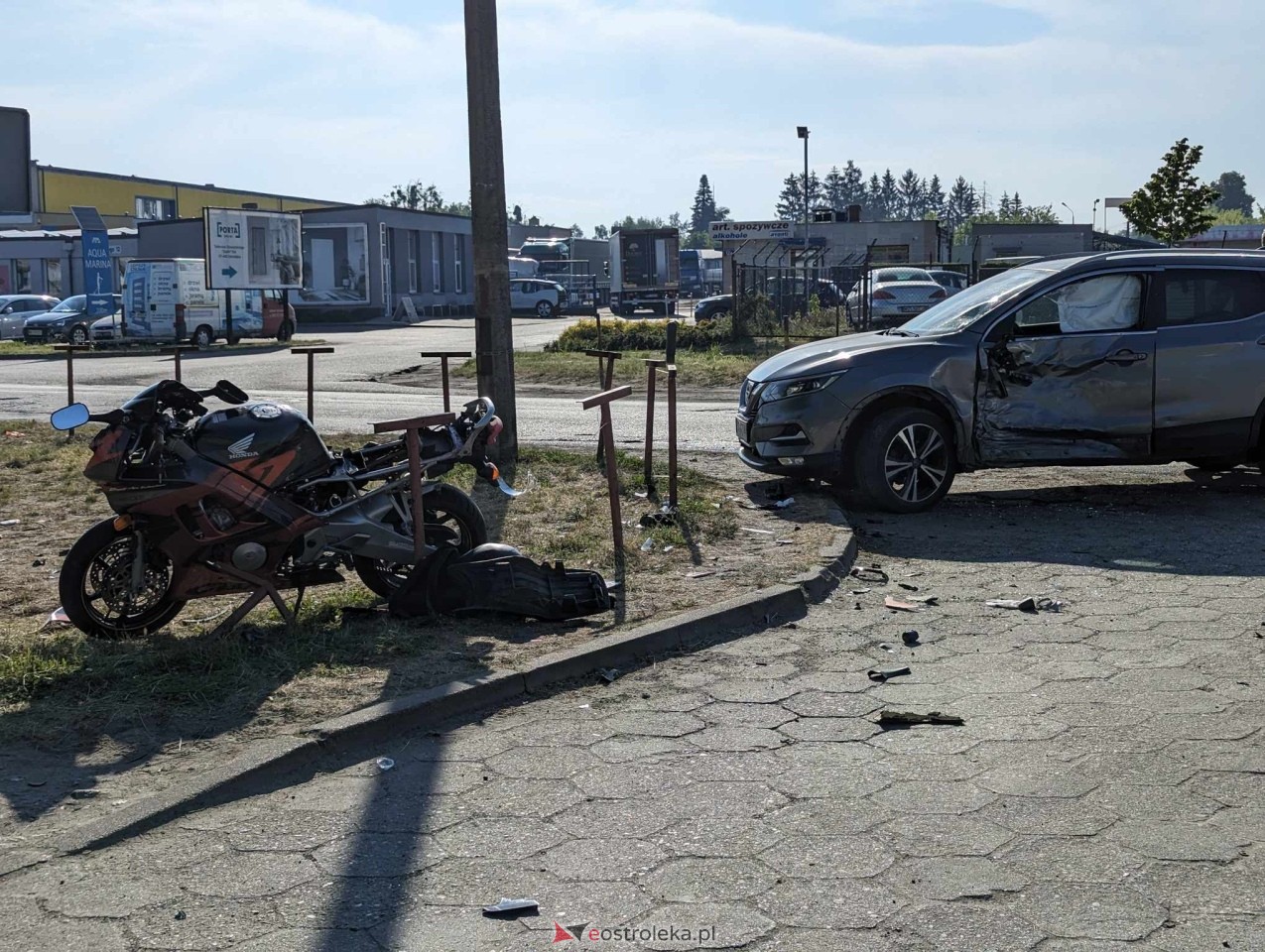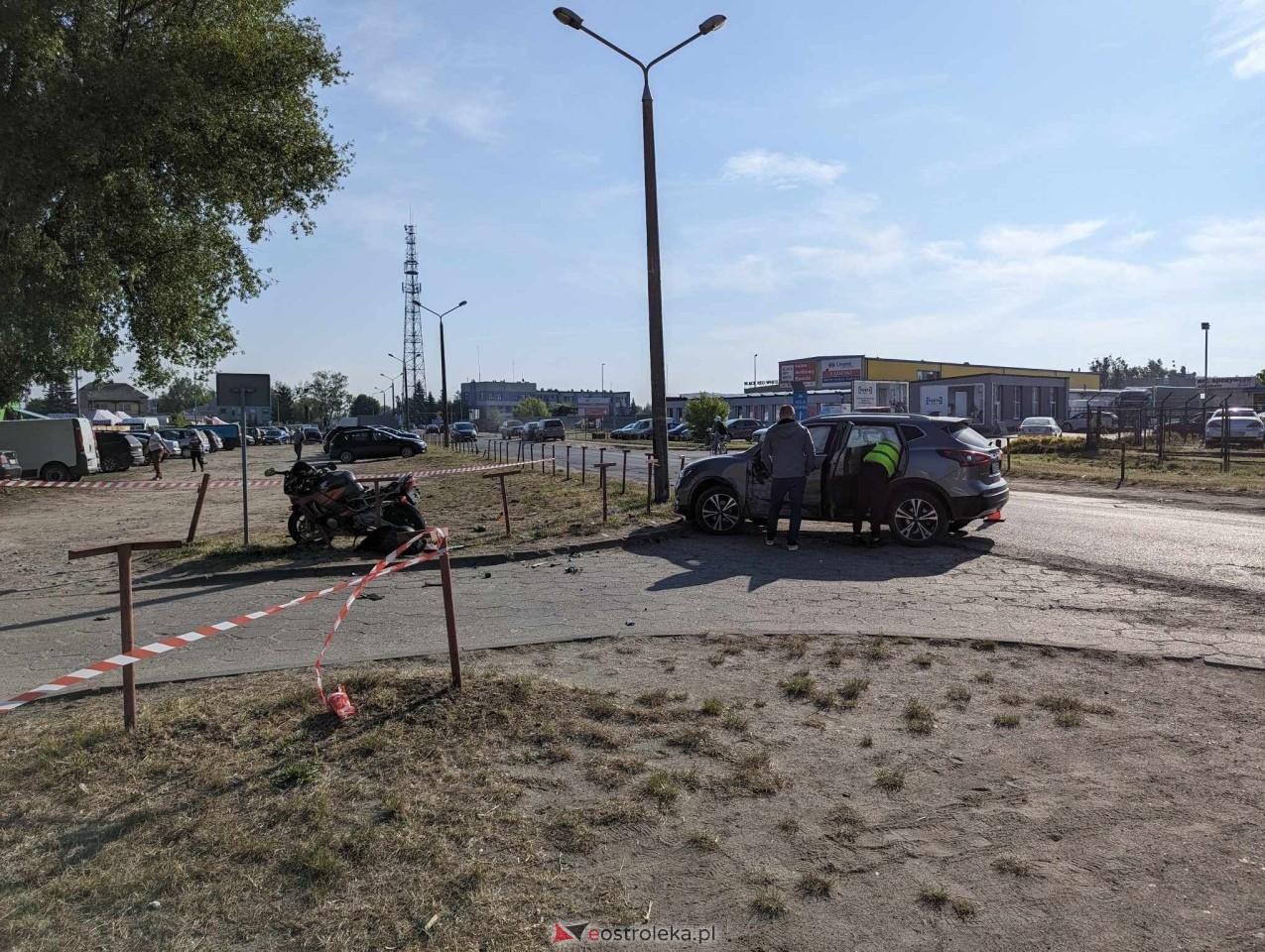 Poważny wypadek na Zawadzkiego “Zośki” w Ostrołęce. W zderzeniu z autem osobowym ucierpiał motocyklista.