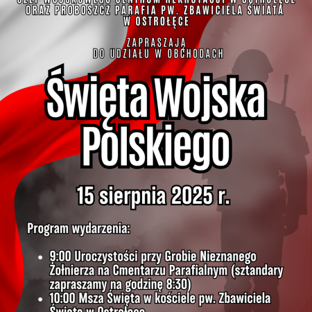 15 sierpnia, w dniu Święta Wojska Polskiego, Ostrołęka uczci pamięć tych, którzy walczyli o wolność i suwerenność ojczyzny. Uroczystości rozpoczną się rano, a udział w nich wezmą przedstawiciele władz, służb mundurowych oraz mieszkańcy miasta.