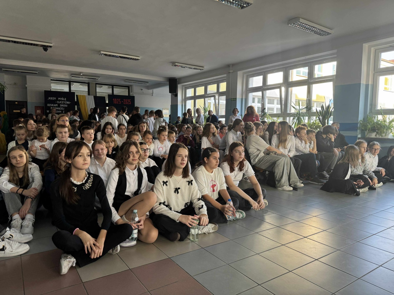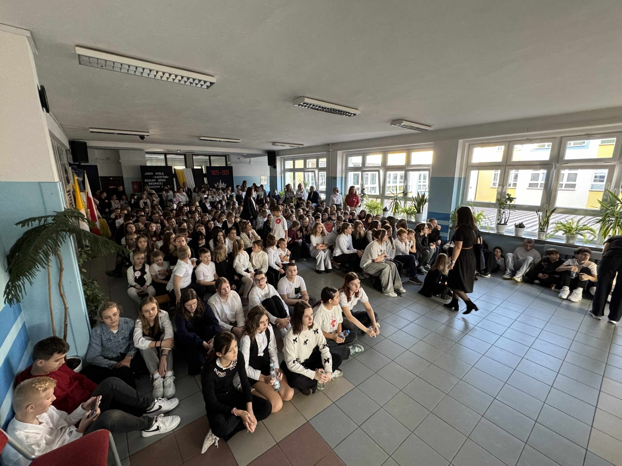 Uroczystość miała niezwykle podniosły charakter. W szkolnej sali rozbrzmiały wiersze, patriotyczne pieśni oraz słowa narracji, które przeniosły zgromadzonych w czasy walki o niepodległość. Wystąpili uczniowie z klas V E, V F, VIII F oraz przedstawiciele wszystkich klas piątych, tworząc chór, który z wielkim zaangażowaniem wykonał utwory przypominające o trudnej, lecz chwalebnej drodze naszego narodu do wolności.