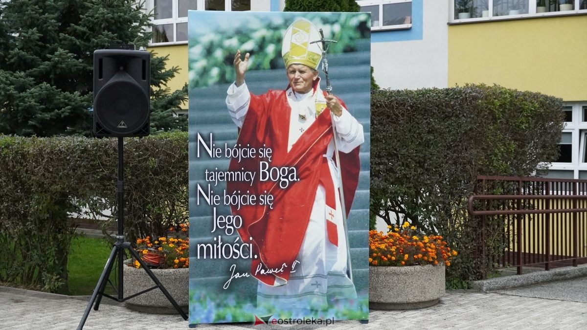 Tegoroczne obchody, podobnie jak w latach ubiegłych, miały wyjątkowy i podniosły charakter. Na placu przed szkołą, przy popiersiu św. Jana Pawła II, odbyła się pierwsza część ceremonii. Delegacja uczniów i pracowników szkoły na czele z dyrektorem, przedstawiciele samorządu miasta i powiatu oraz liczne poczty sztandarowe uroczyście złożyli kwiaty i zapalili znicze, oddając hołd Papieżowi.