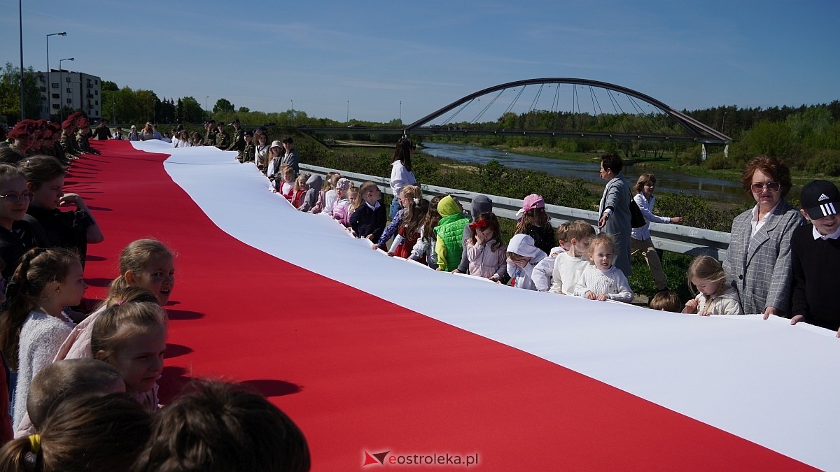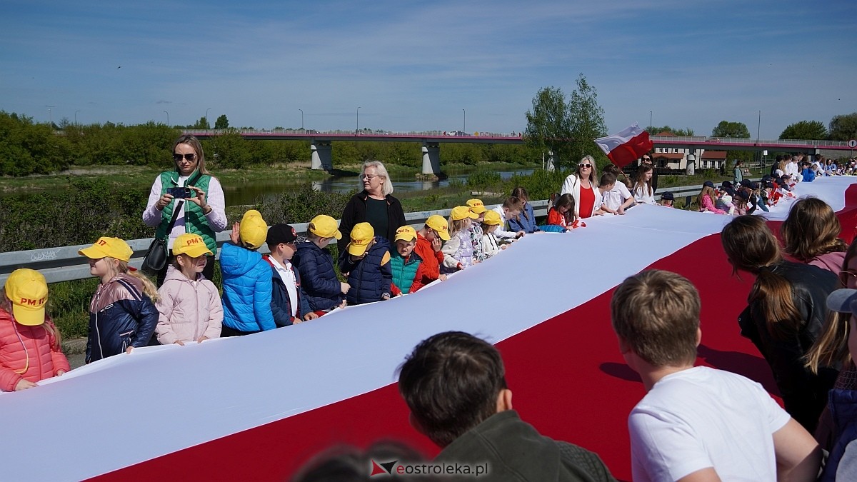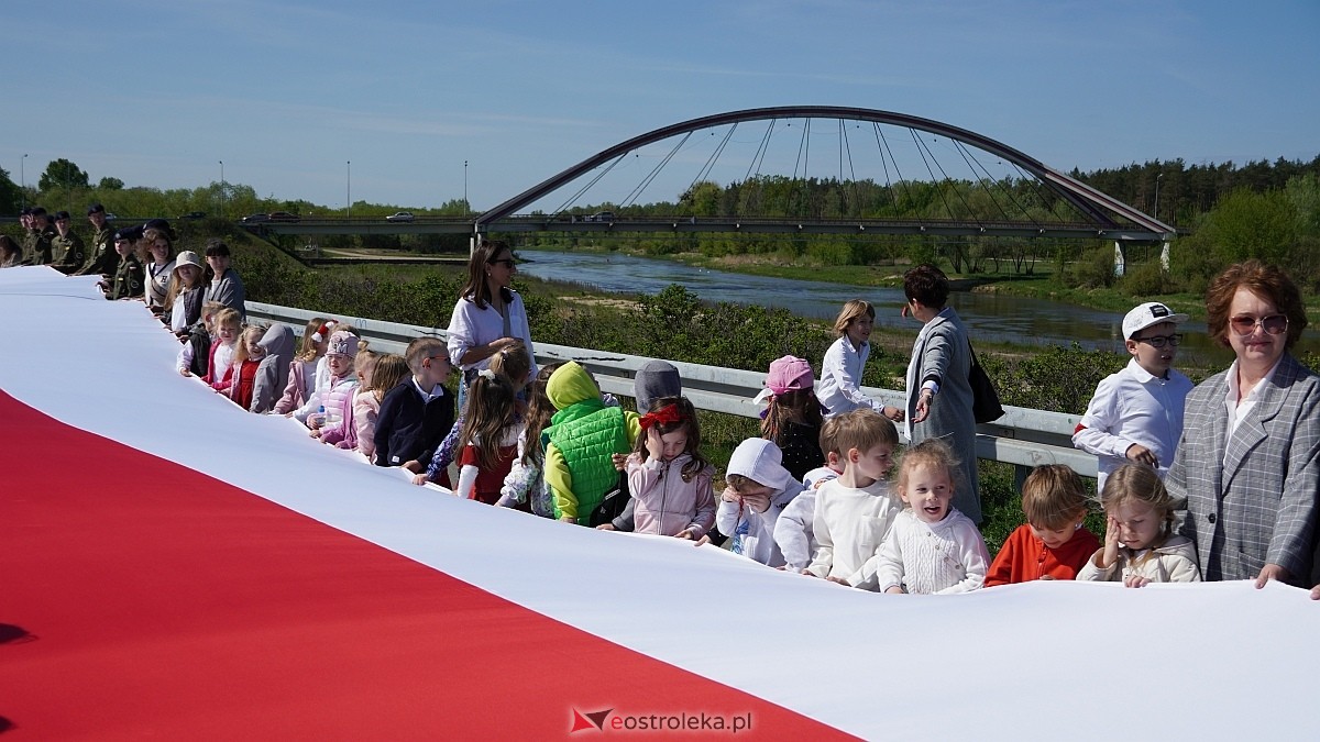 Kulminacyjnym momentem wydarzenia było rozciągnięcie gigantycznej, 100-metrowej biało-czerwonej flagi na odcinku drogi pomiędzy dwoma ostrołęckimi mostami. Widok ten poruszył zarówno uczestników, jak i zaproszonych gości. W happeningu wzięły udział również zaprzyjaźnione szkoły i przedszkola z Ostrołęki, które tłumnie odpowiedziały na zaproszenie organizatorów.